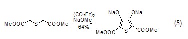 合成噻吩类化合物 在碱的条件下,乙二酸二乙酯与β-硫醚二酯类化合物可合成噻吩衍生物 (式5)[10],采用类似方法也可合成硒代噻吩衍生物[11]。